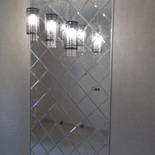 Использована зеркальная квадратная и треугольная плитка с фацетом.